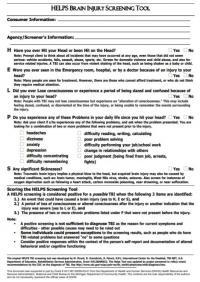 HELPS Brain Injury Screening Tool: The original HELPS TBI screening tool was developed by M. Picard, D. Scarisbrick, R. Paluck, 9/91, International Center for the Disabled, TBI-NET, U.S. Department of Education, Rehabilitation Services Administration, Grant #H128A00022. The Helps Tool was updated by project personnel to reflect recent recommendations by the CDC on the diagnosis of TBI.